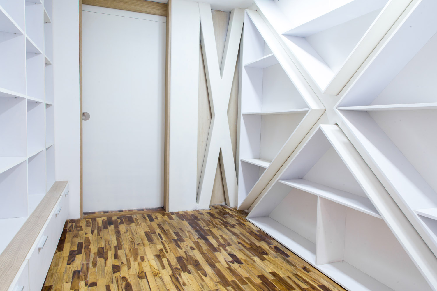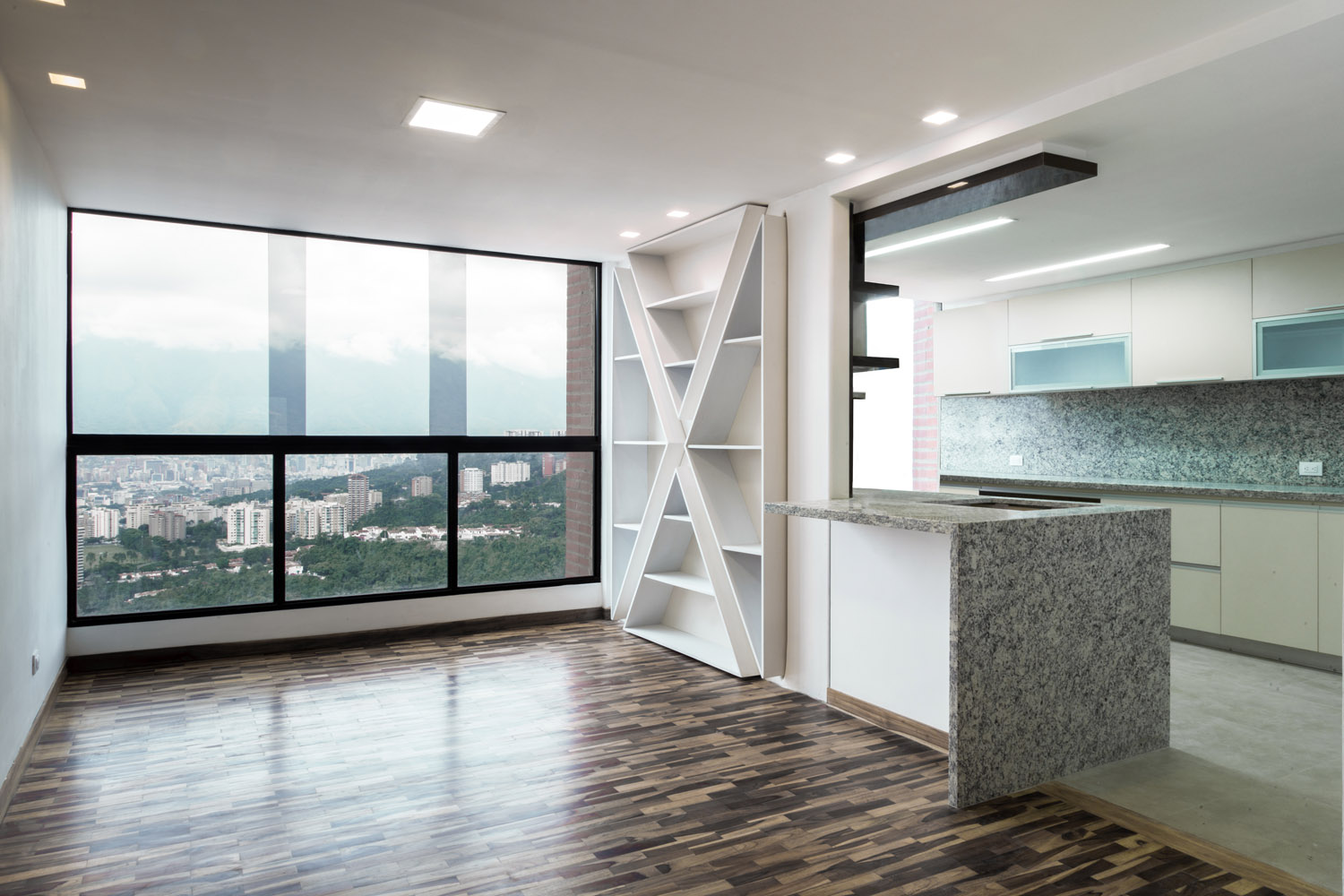 Este inmueble originalmente construido en estructura metálica represento un reto para el diseño interior, ya que al tener crucetas como estructuras de soporte de 2,60 de altura x 2,60 de ancho, losa cero en techos y columnas metálicas era necesario incorporarlos al espacio y al diseño. Por lo que se acondicionaron para ser pintadas y aprovechadas como nichos y bibliotecas muy funcionales para los espacios de hoy en día. El techo se construyó en cocuiza para lograr una uniformidad total y los espacio se interconectan entre si creando un ambiente flexible.